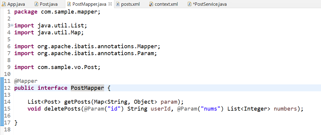 void deletePosts(@Param("numbers") List<Integer> numbers);