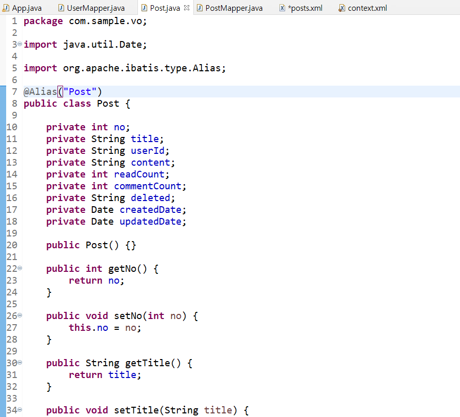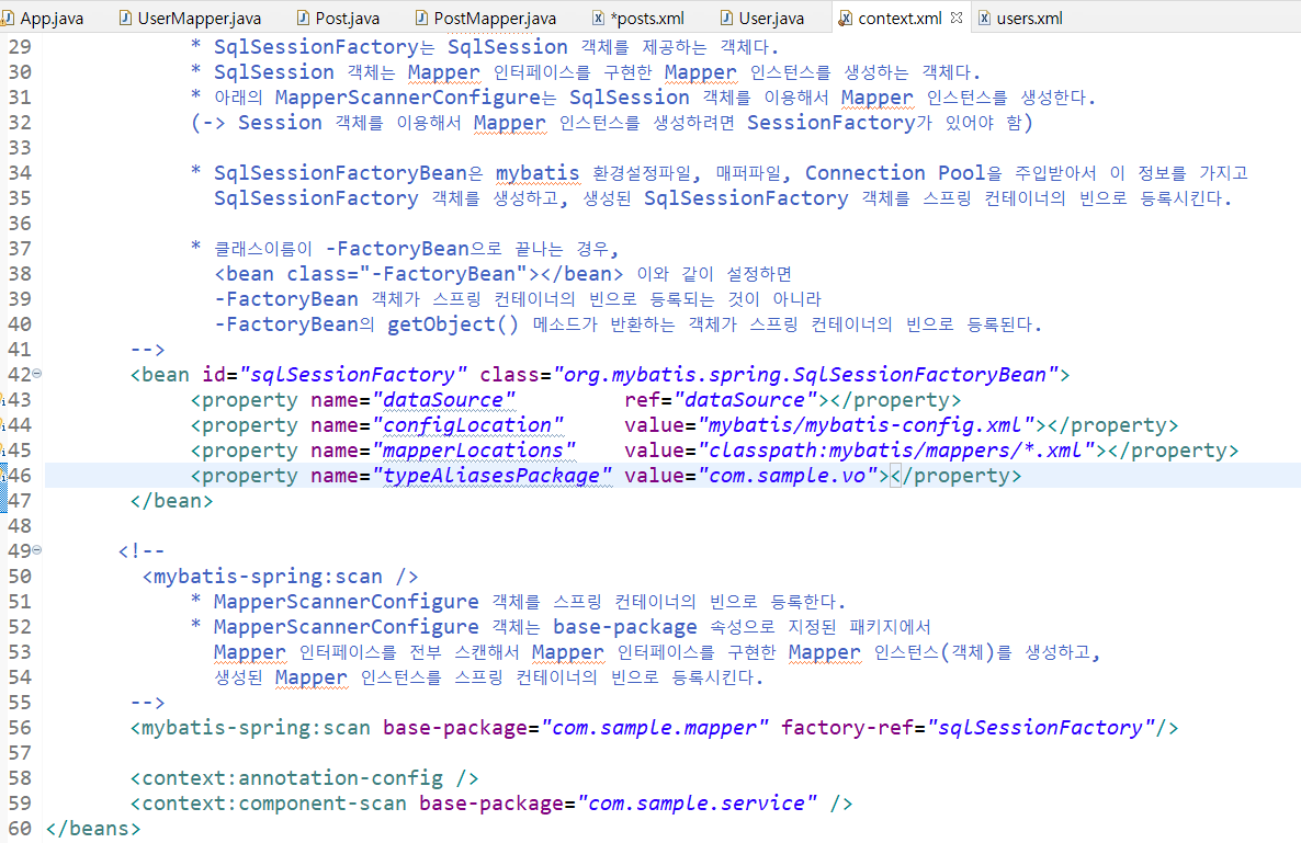 <property name="typeAliasesPackage" value="com.sample.vo"></property>