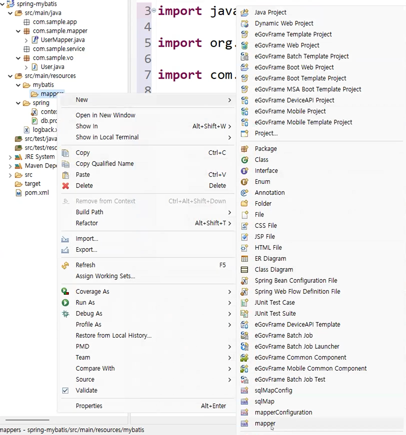3. Mapper 인터페이스와 Mapper 파일을 작성하기