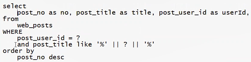 <select id="getPosts" parameterType="map" resultType="Post" >