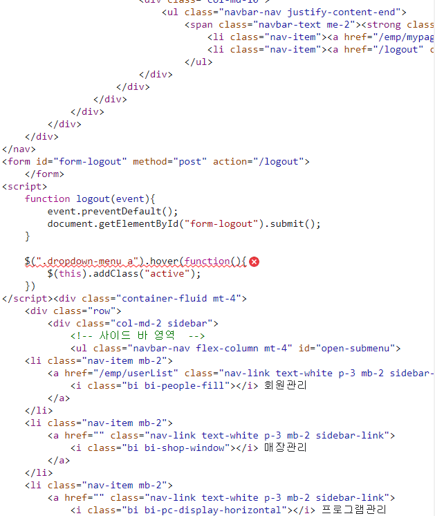 그 내비바가 상단에 위치하다보니 자꾸 제이쿼리 스크립트 태그가 없다는 오류가 떴던 것이었답니다.