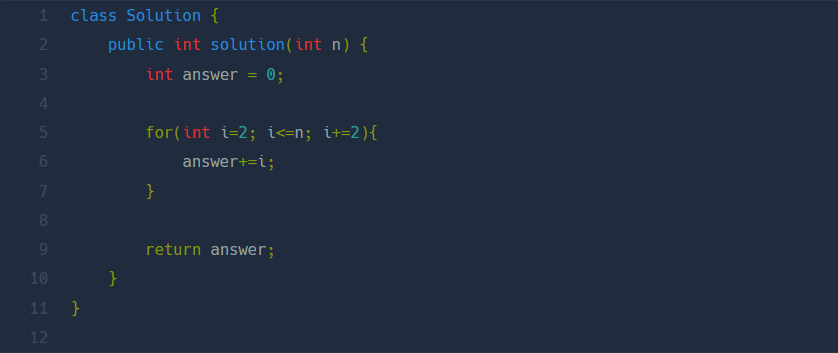 오호 어차피 짝수만 더하는거니까 2부터 시작해서 i에 2씩 더해서 증가하는 for문 ....