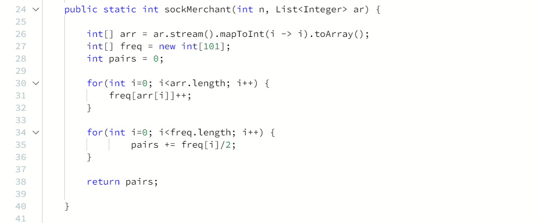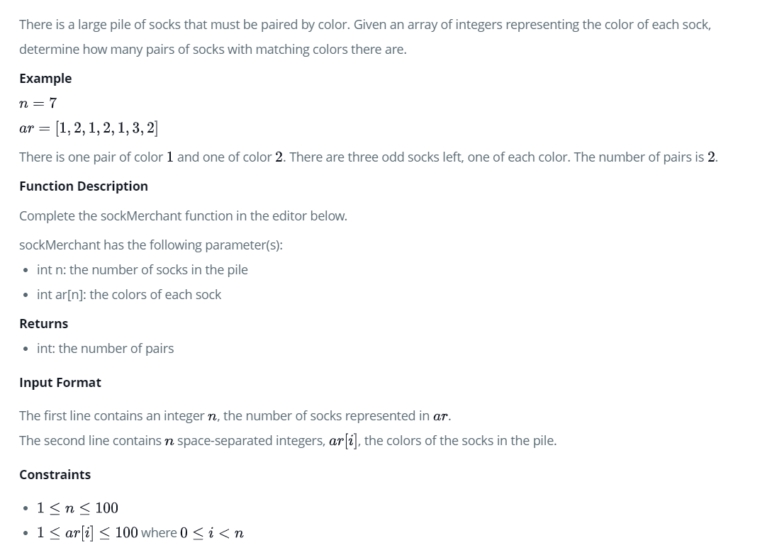 ar = 양말의 색깔을 나타내는 정수 배열
