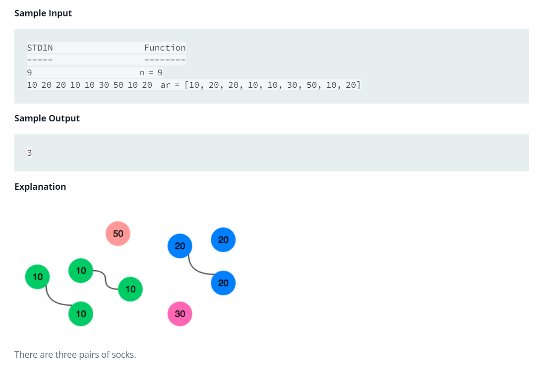 ar 배열에서 양말이 총 몇 켤레(쌍)가 나오는지 구하기