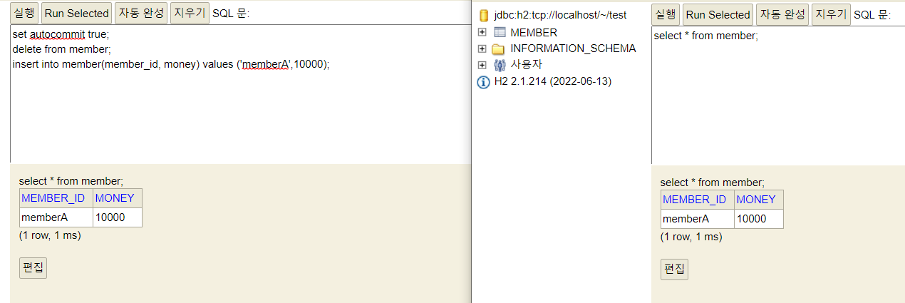 insert into member(member_id, money) values ('data2',10000); //자동 커밋