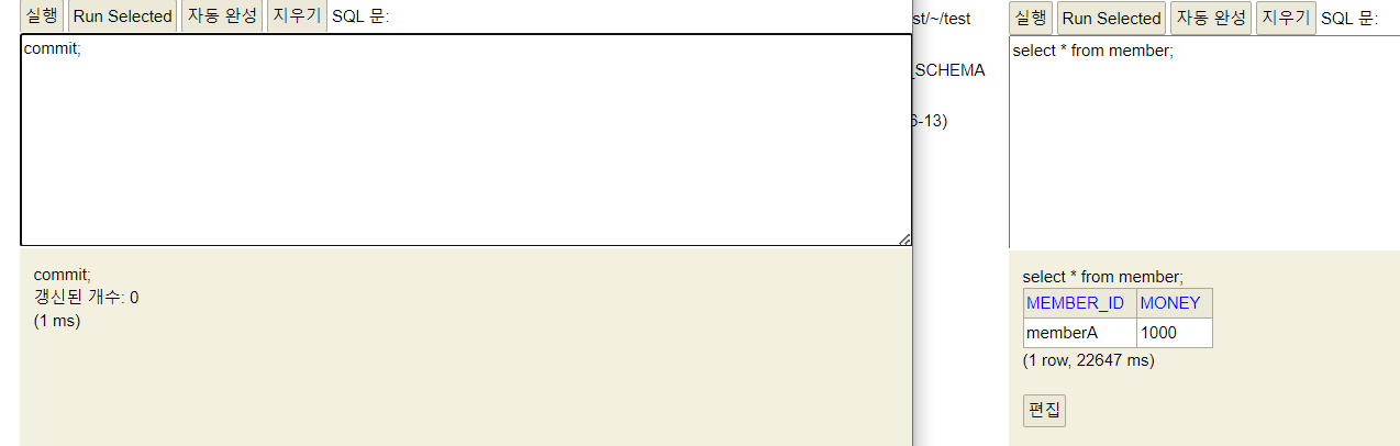 insert into member(member_id, money) values ('data1',10000); //자동 커밋