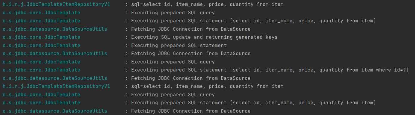 - JdbcTemplateItemRepositoryV1은 ItemRepository 인터페이스를 구현함