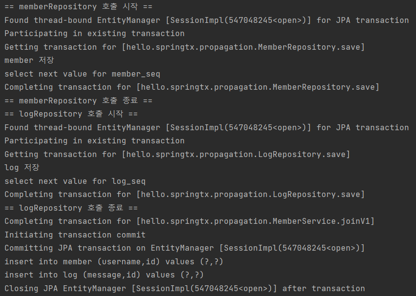 - MemberService에서 정상흐름 커밋 수행