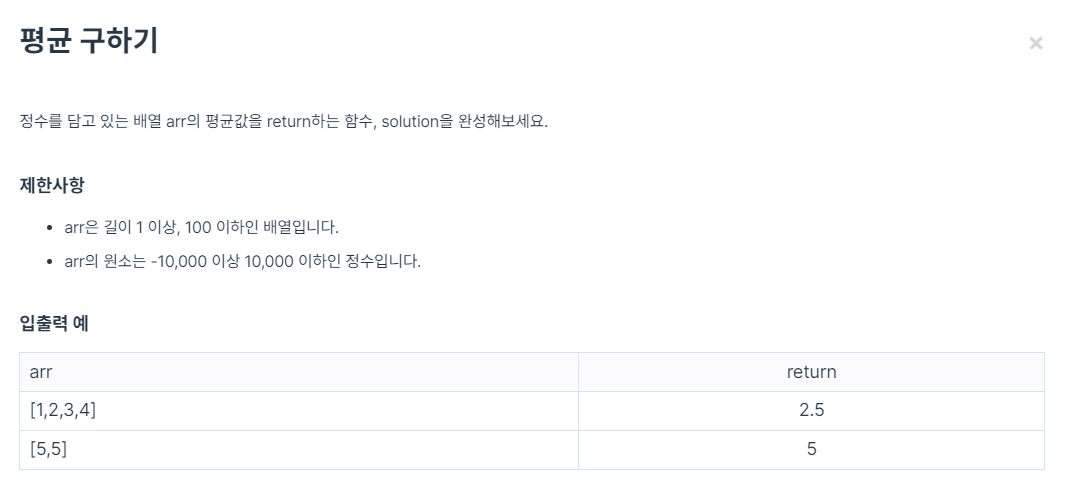 정수 배열 arr의 평균 구하기