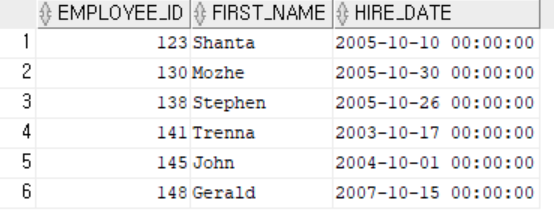 -- EMPLOYEES 테이블에서 2007년에 입사한 직원들의 아이디, 이름, 입사일을 조회하기