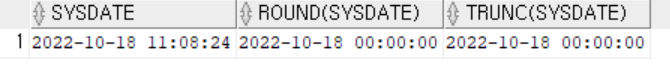 - trunc(날짜) : 지정된 날짜에서 시간정보를 전부 0으로 바꾼 값을 반환한다.