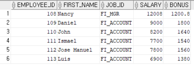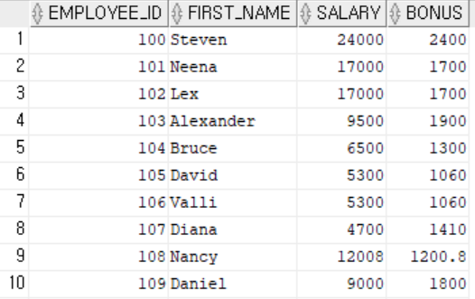 select employee_id, first_name, salary, commission_pct, salary + salary*commission_pct
