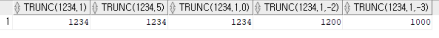 trunc(1234.1, -3)              --1000의 자리 이하를 전부 버린다.(0으로 한다.)