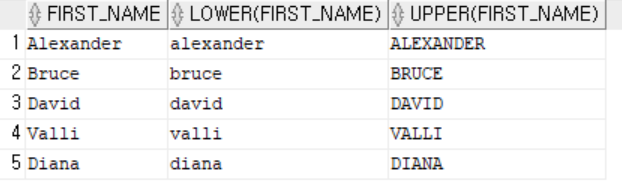 -- lower(컬럼명 혹은 표현식), upper(컬럼명 혹은 표현식) : 소문자, 대문자로 변환